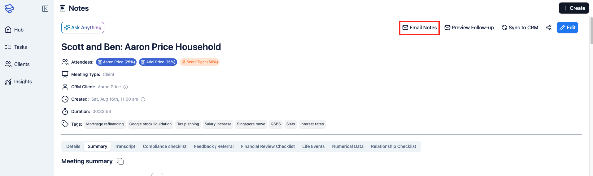 You can email the note to yourself by clicking on the email button in the top right corner.