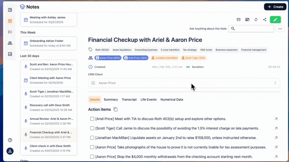 Use Zeplyn to draft a follow up email to your client with notes and action items from your meeting.