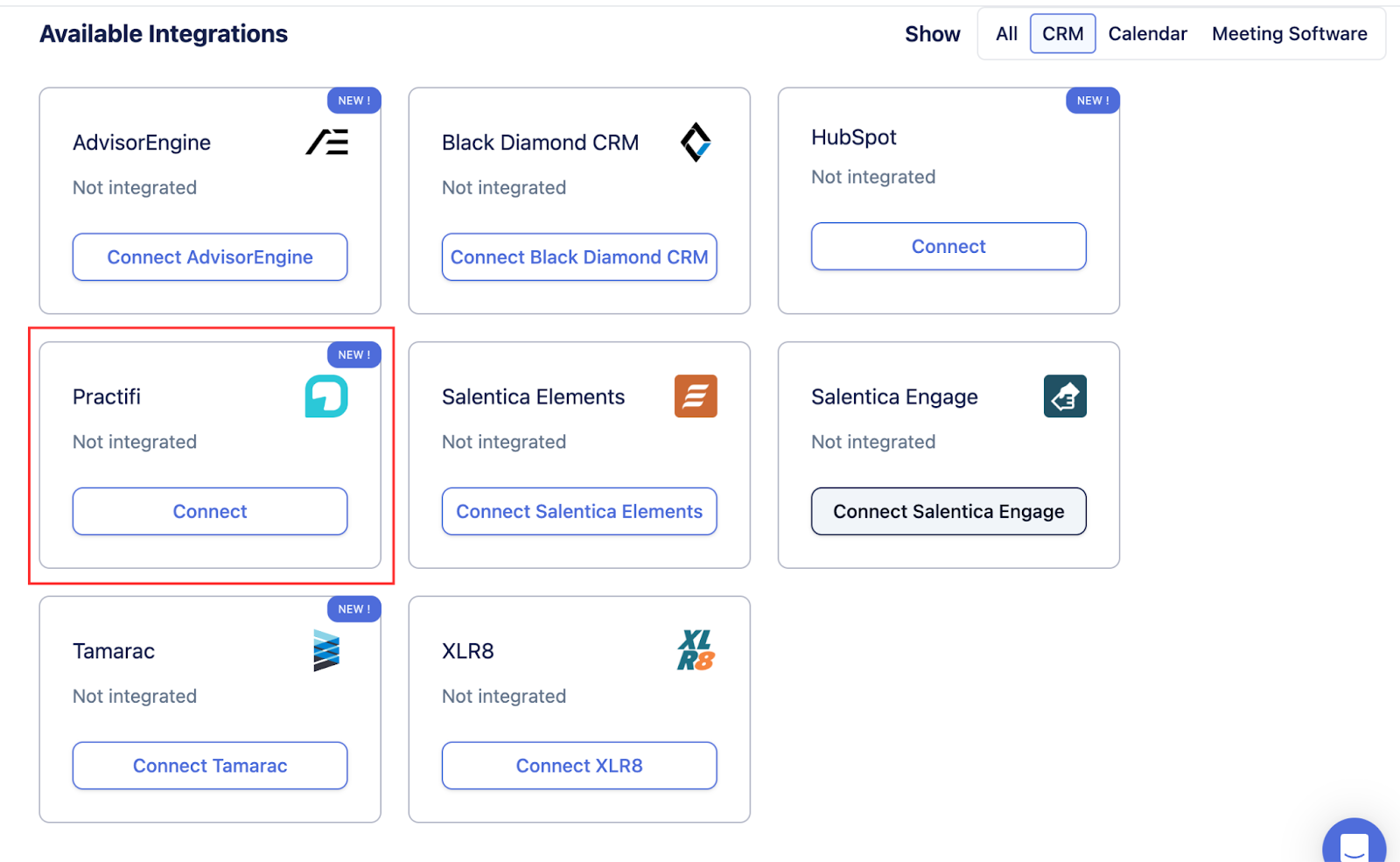 Under Available Integrations, find Practifi.