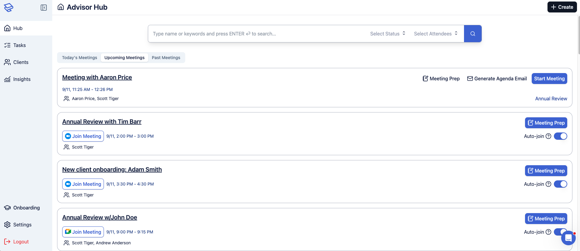 After integrating with your calendar, your upcoming meetings will automatically begin appearing and all of the relevant information will be auto-filled within the note creation fields.