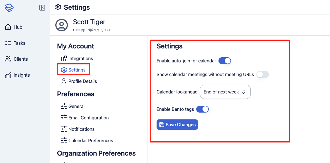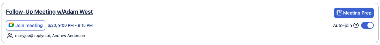 Users can have the Zeplyn notetaker join their calendar events automatically with a toggle in settings
